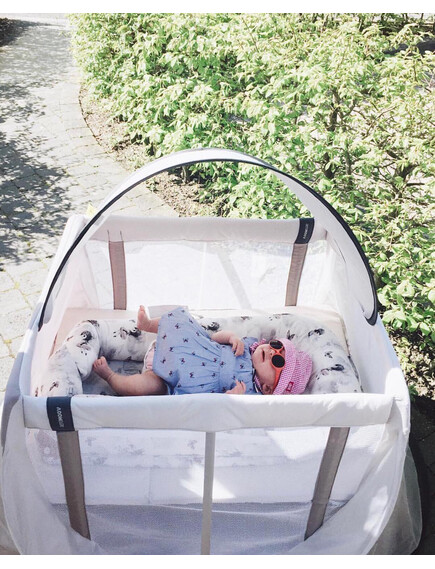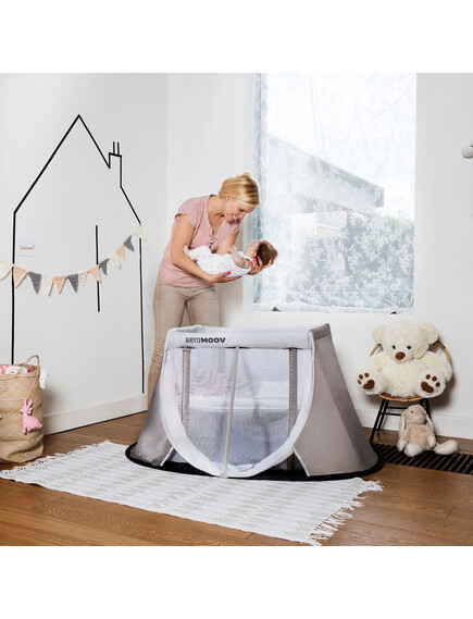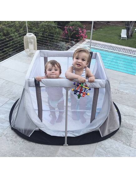 Ανοίγει και κλείνει σε λίγα δευτερόλεπτα, μεταφέρεται παντού και προσφέρει στο παιδί ένα άνετο και ασφαλές μέρος για ύπνο και παιχνίδι — στο σπίτι, στο ταξίδι, στις διακοπές, στη βεράντα ή στο εξοχικό.