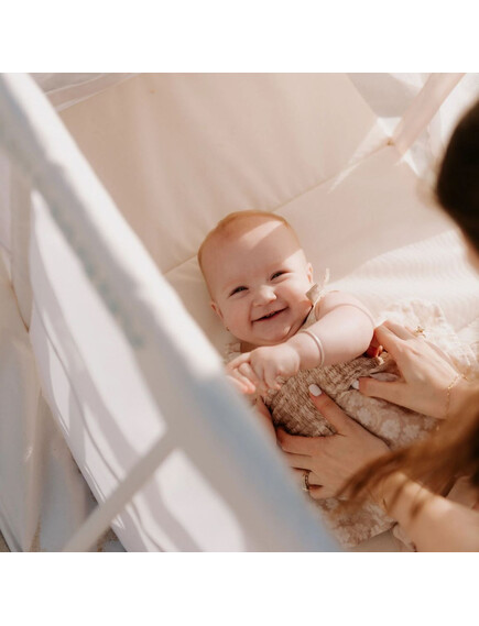 Χρησιμοποιείται παντού — από το σαλόνι ως τον κήπο ή την παραλία. Διατίθενται έξτρα σκίαστρο και κουνουπιέρα (πωλούνται χωριστά).