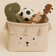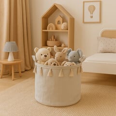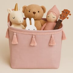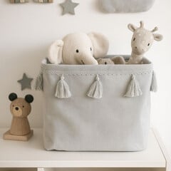 Τακτοποιήστε  το δωμάτιο του παιδιού σας εύκολα και γρήγορα με τα υπέροχα καλάθια αποθήκευσης. Το καλάθι αποθήκευσης είναι κερωμένο στο εσωτερικό, ώστε να διατηρεί το σχήμα του ακόμη και όταν είναι κενό.  Είναι διακοσμημένο με φουντίτσες γύρω-γύρω κάνοντάς το ακόμα...