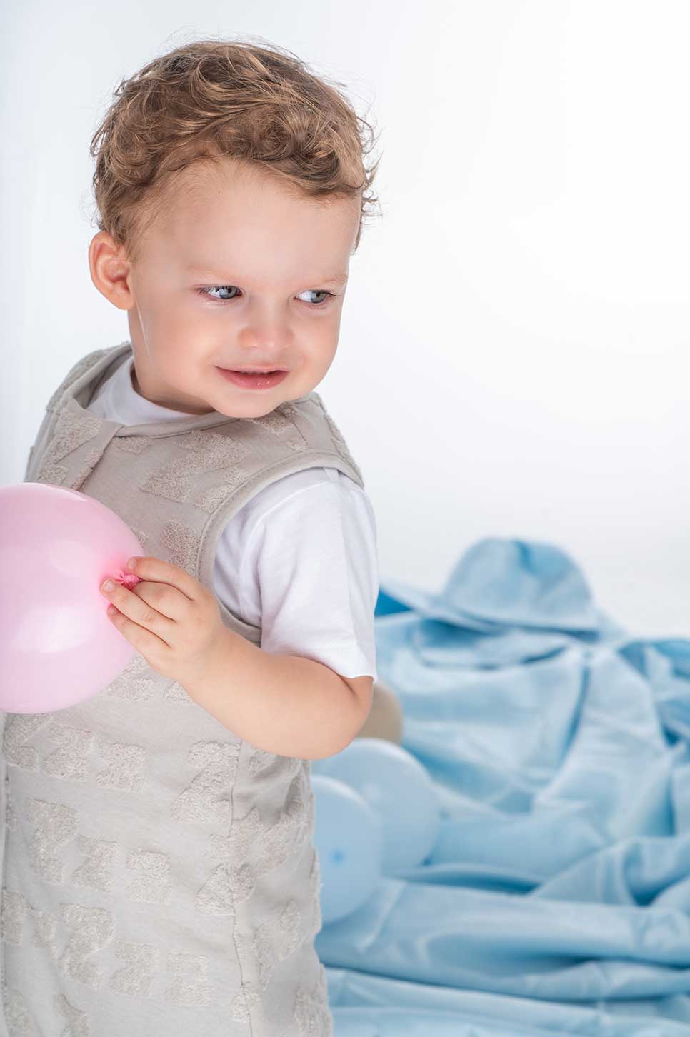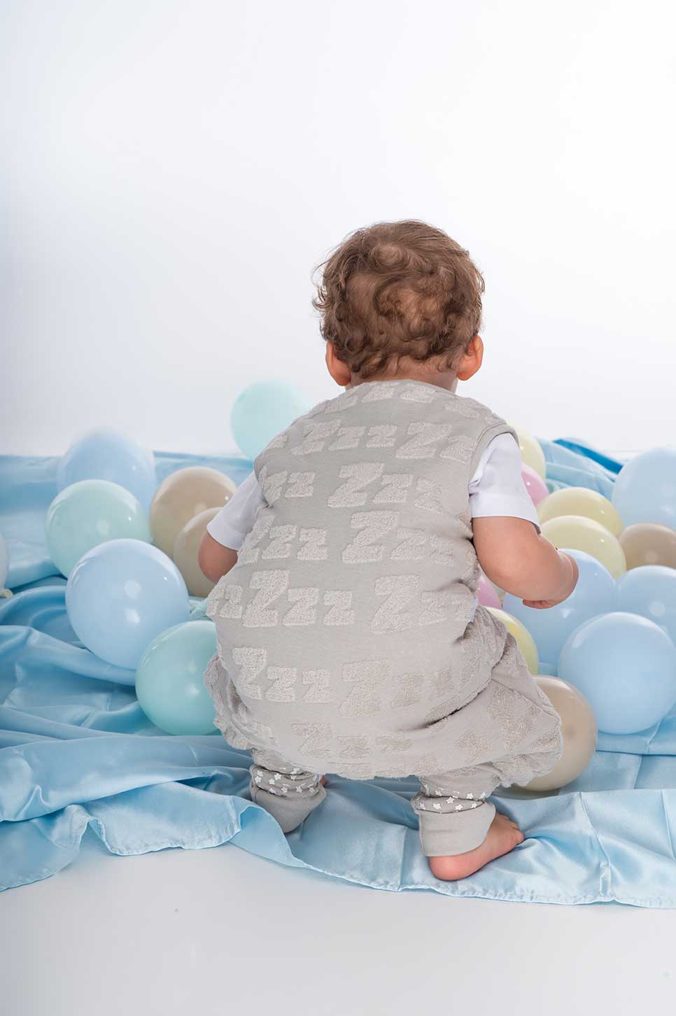 Χωρίς μανίκια, ώστε το μωρό να αποβάλει τη θερμότητα από τα χεράκια και να αποφεύγεται ο κίνδυνος υπερθέρμανσης, που θα μπορούσε να είναι επικίνδυνος.