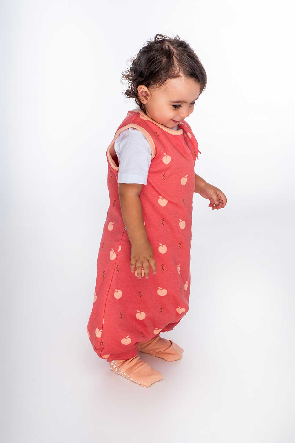Χωρίς μανίκια, ώστε το μωρό να αποβάλει τη θερμότητα από τα χεράκια και να αποφεύγεται ο κίνδυνος υπερθέρμανσης, που θα μπορούσε να είναι επικίνδυνος.