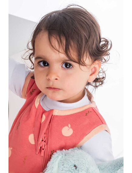 Χωρίς μανίκια, ώστε το μωρό να αποβάλει τη θερμότητα από τα χεράκια και να αποφεύγεται ο κίνδυνος υπερθέρμανσης, που θα μπορούσε να είναι επικίνδυνος.