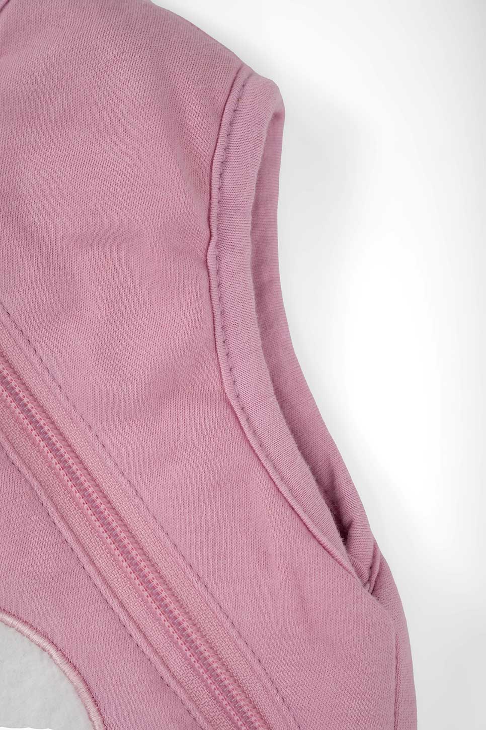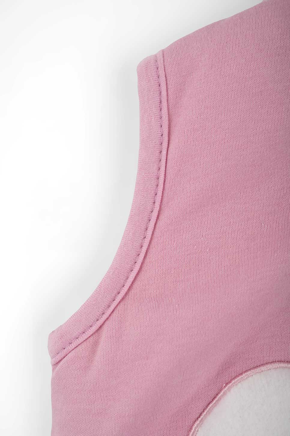 Χωρίς μανίκια, ώστε το μωρό να αποβάλει τη θερμότητα από τα χεράκια και να αποφεύγεται ο κίνδυνος υπερθέρμανσης, που θα μπορούσε να είναι επικίνδυνος.