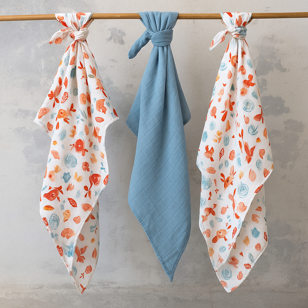 Εξαιρετικά απαλές πάνες αγκαλιάς- μουσελίνες από 100% βαμβάκι για το ευαίσθητο δέρμα του μωρού σας.