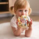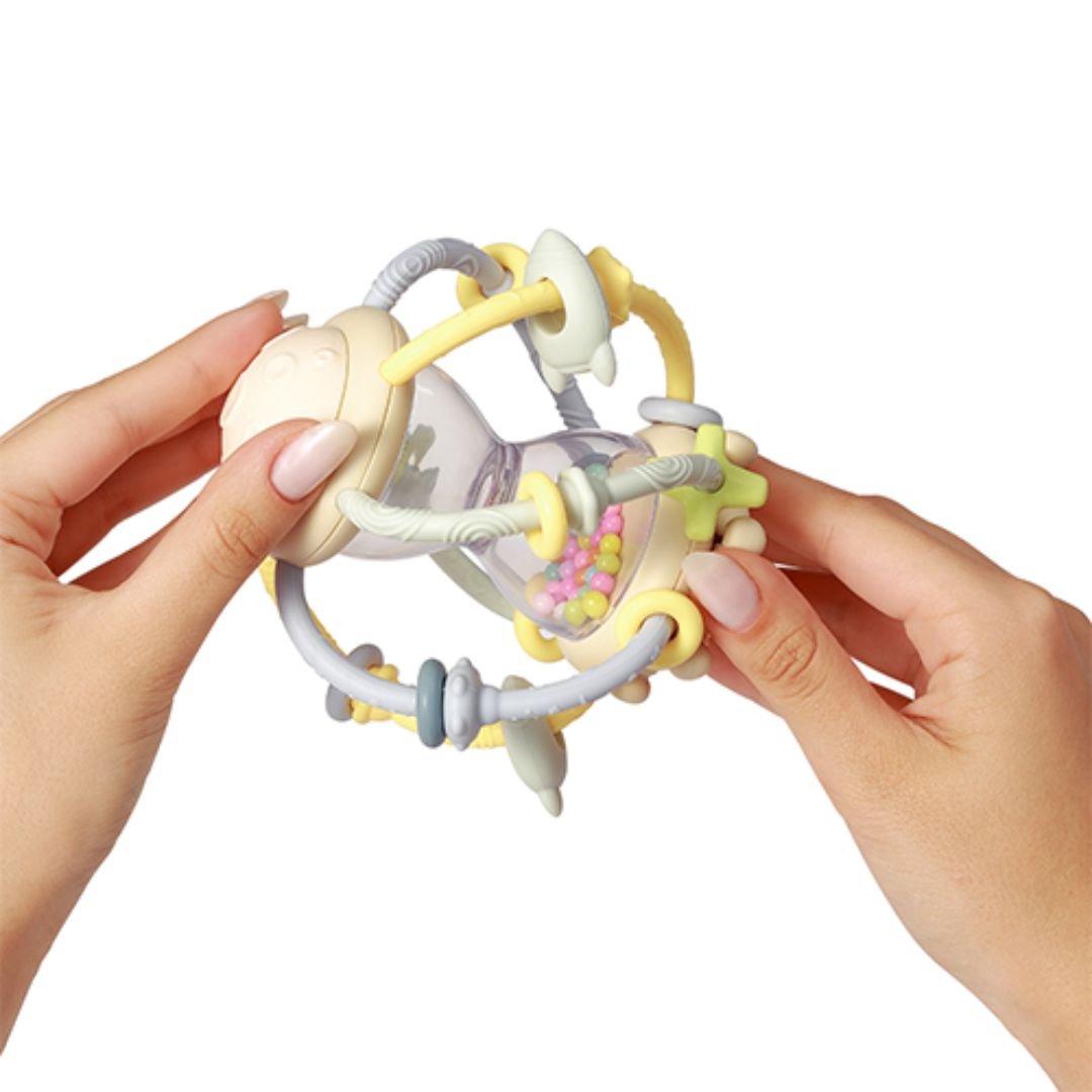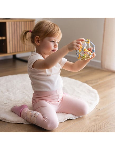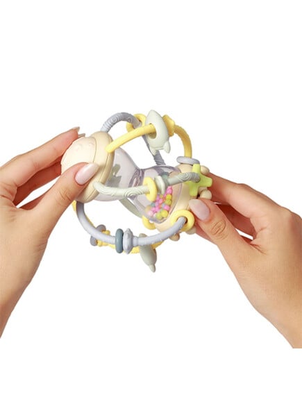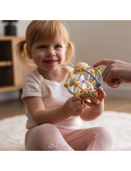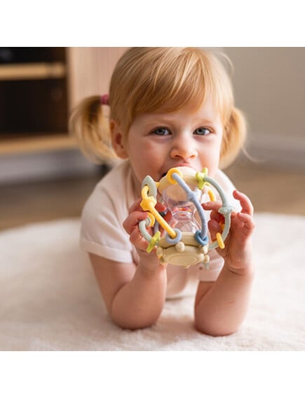 Ένας συνδυασμός μαλακού μασητικού και διασκεδαστικής κουδουνίστρας, σχεδιασμένος με γνώμονα την περιέργεια των μικρών παιδιών. Το μέγεθός του είναι ιδανικό για μικρά χεράκια, ενώ τα χρωματιστά στοιχεία και η εργονομική του κατασκευή ενισχύουν τον συντονισμό χεριού-ματιού και την παρατηρητικότητα.