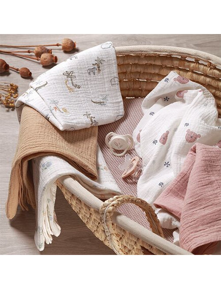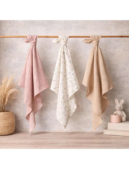 Είναι από 100% βαμβάκι υψηλής ποιότητας με πολύ απαλή υφή και η μουσελίνα έχει την ιδιότητα σαν υλικό να αναπνέει.