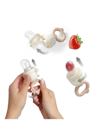 Διαθέτει 2 εξαιρετικά μαλακά εξαρτήματα για να μην τραυματίζει τα ευαίσθητα βρεφικά ούλα των παιδιών και βγαίνουν σε 2 μεγέθη ανάλογα με την ηλικία του παιδιού.