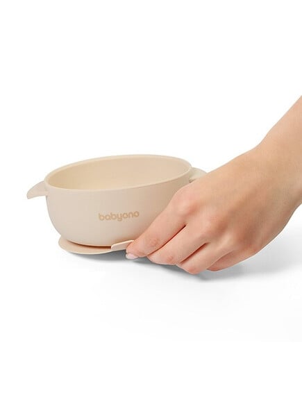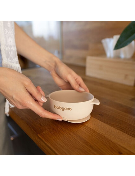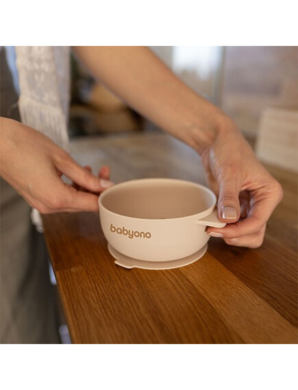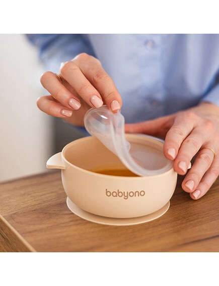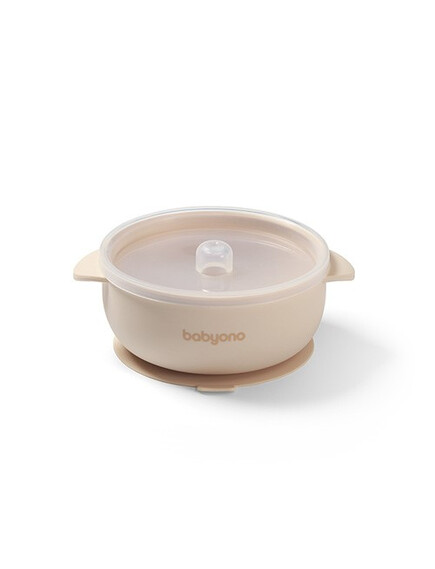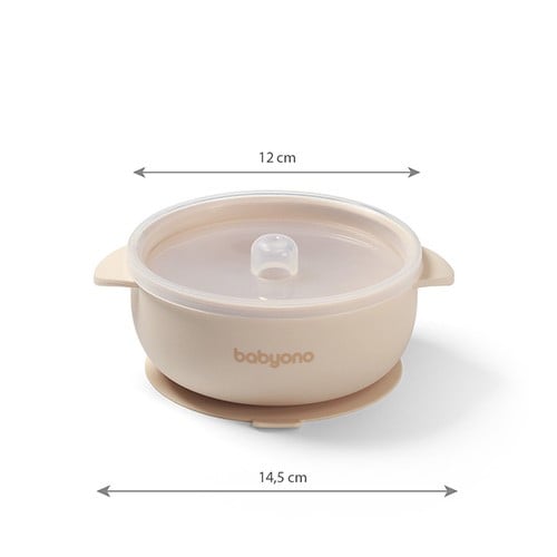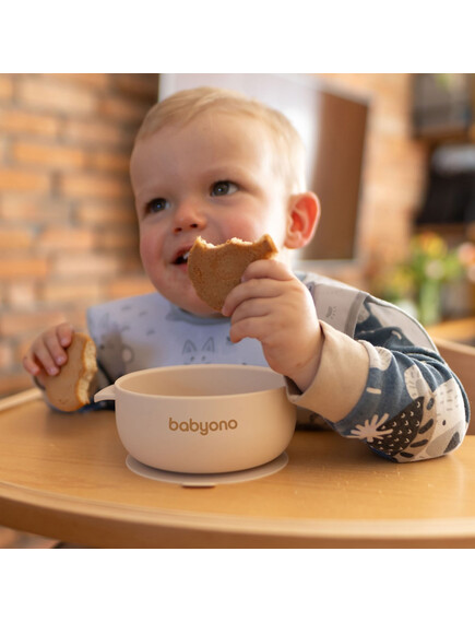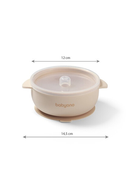 BabyOno: Μπολάκι σιλικόνης με λαβές, καπάκι & βάση με βεντούζα - Μπεζ
