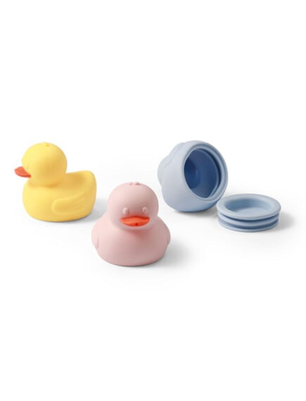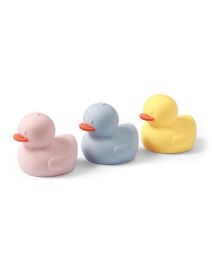 Το σετ περιλαμβάνει τρία προσεκτικά σχεδιασμένα παπάκια μπάνιου, το καθένα σε διαφορετικό παστέλ χρώμα. Κατασκευασμένα από μαλακή, ευχάριστη στην αφή σιλικόνη, διαθέτουν άνοιγμα στο ράμφος που επιτρέπει το πιτσίλισμα του νερού. Ο εργονομικός τους σχεδιασμός και τα ευχάριστα χρώματα ενθαρρύνουν το μωρό να εξασκήσει τις δεξιότητες κράτησης και να παίξει με χαρά.