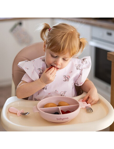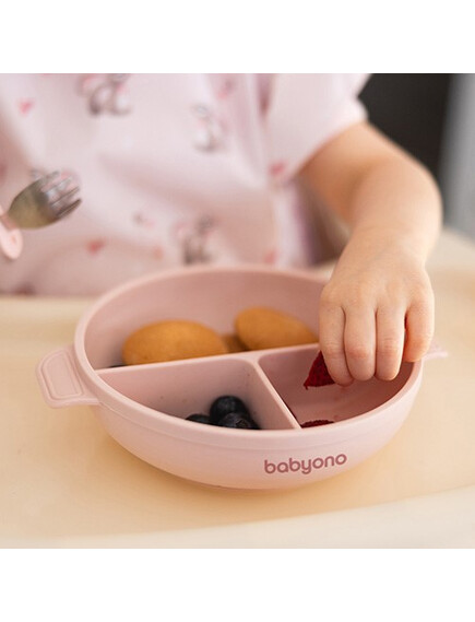 Το πιάτο σιλικόνης με τρεις θήκες, καπάκι και βάση αναρρόφησης της Babyono κάνει την εισαγωγή στερεών τροφών εύκολη και διασκεδαστική! Ειδικά σχεδιασμένο για την μέθοδο BLW (Baby Led Weaning), ενθαρρύνει το μωρό να τρώει μόνο του, δοκιμάζοντας νέες γεύσεις με ασφάλεια – χωρίς ακαταστασία στο τραπέζι.