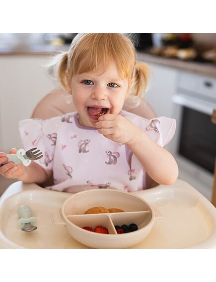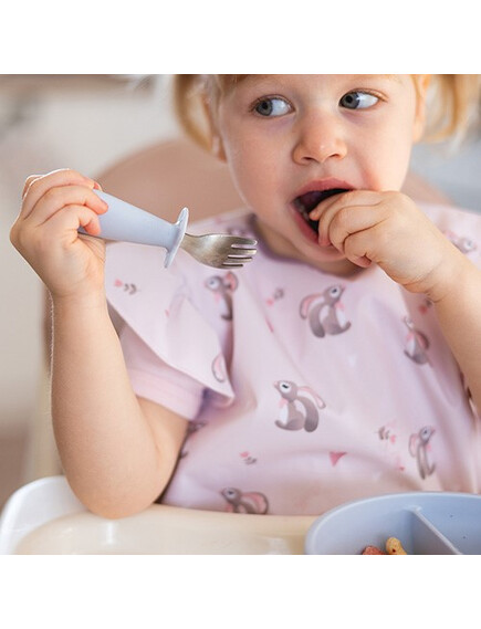 Οι φαρδιές και στρογγυλεμένες λαβές με εξογκώματα είναι σχεδιασμένες για μικρά χέρια. Το ελαφρύ σετ διασφαλίζει άνετο κράτημα και διευκολύνει την αυτονομία στο φαγητό, βοηθώντας στην ανάπτυξη δεξιοτήτων.