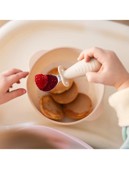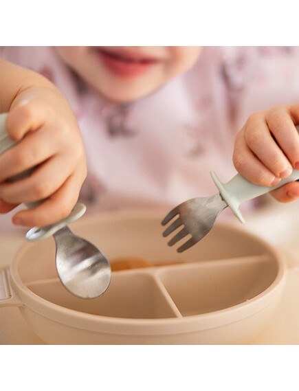 Οι φαρδιές και στρογγυλεμένες λαβές με εξογκώματα είναι σχεδιασμένες για μικρά χέρια. Το ελαφρύ σετ διασφαλίζει άνετο κράτημα και διευκολύνει την αυτονομία στο φαγητό, βοηθώντας στην ανάπτυξη δεξιοτήτων.