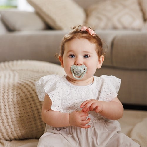 Οι ανατομικές πιπίλες σιλικόνης (6–18 μηνών) αποτελούν εξαιρετική επιλογή για γονείς που θέλουν να υποστηρίξουν σωστά την ανάπτυξη του ουρανίσκου και της γνάθου του παιδιού.