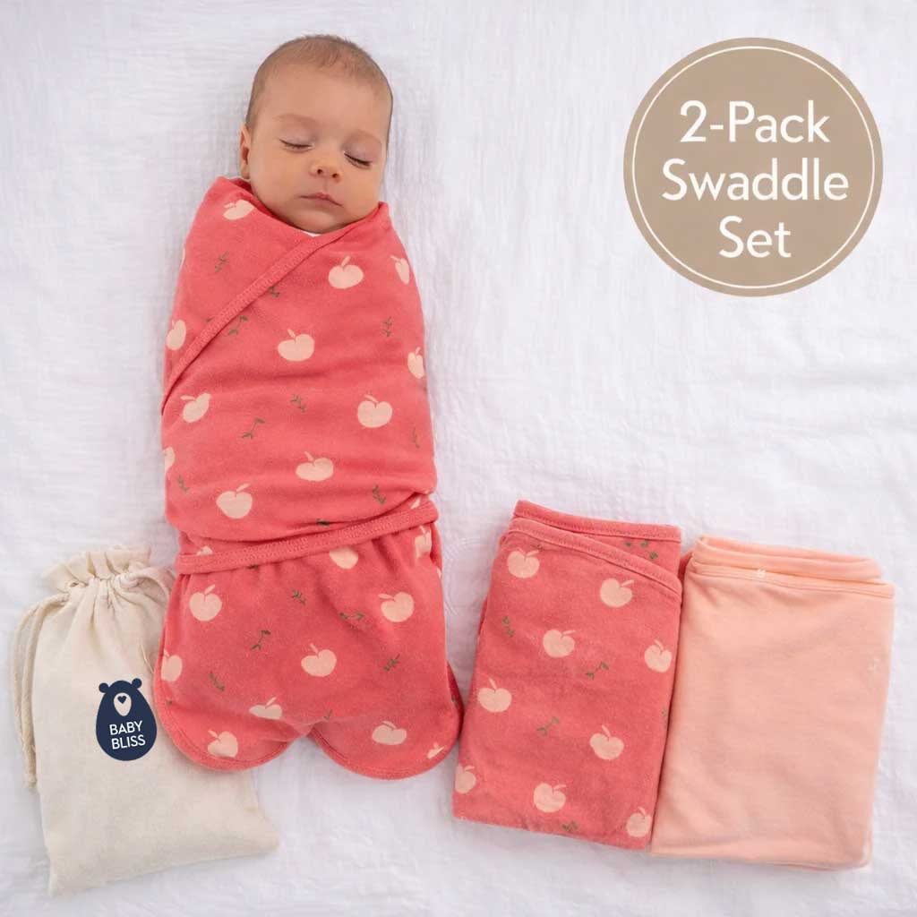 BlissSnug: Υπνόσακος Φασκιώματος / Σετ των 2 - Lovely Apples/Pink