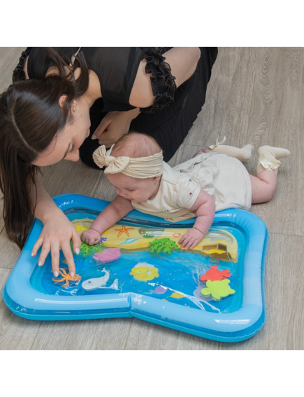 Τα παιδιά τρελαίνονται για το νερό και αυτό το φουσκωτό στρώμα τους δίνει τη δυνατότητα να παρακολουθούν τον κόσμο του βυθού. Τα πολύχρωμα σχήματα εναλλάσσονται και κινούνται μέσα στο νερό, καθώς το μωρό πατάει με τα χεράκια του πάνω σε αυτό.