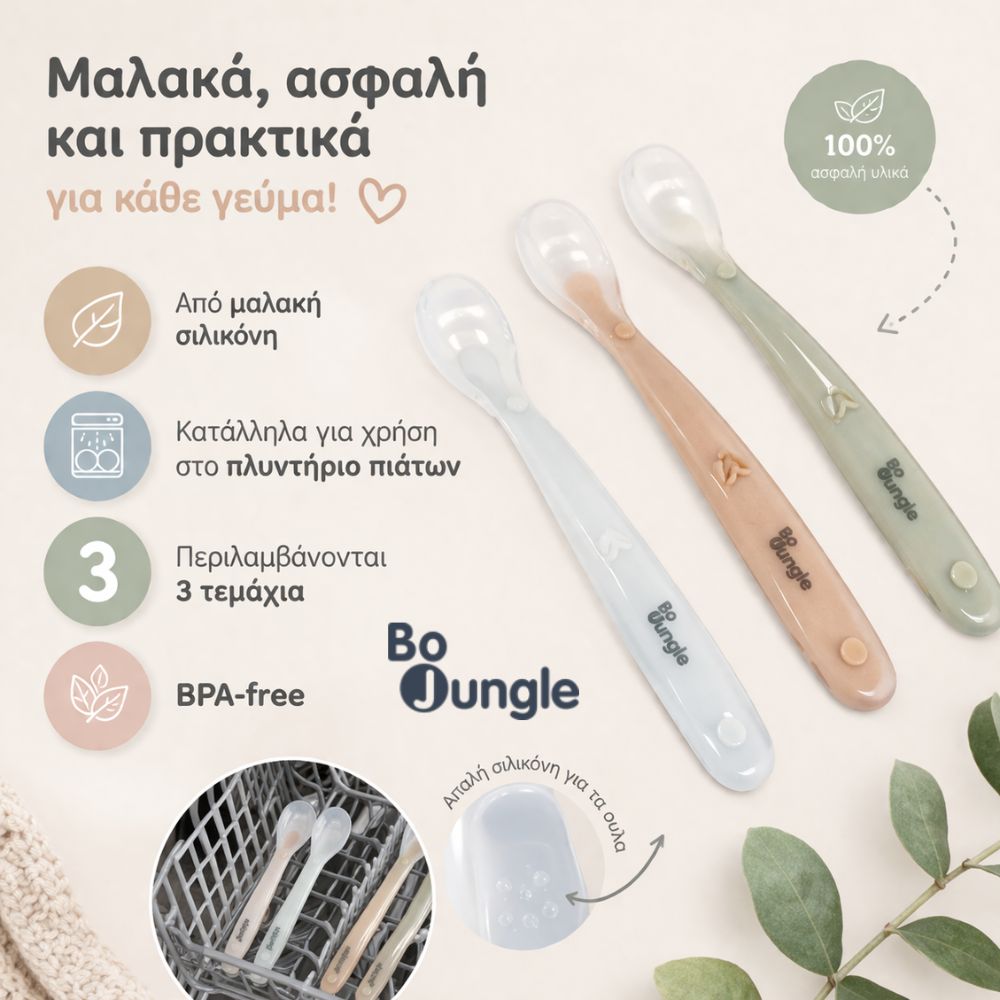 Με τα μαλακά κουτάλια σιλικόνης της Bo Jungle, το τάισμα γίνεται πιο απλό, πιο καθαρό και πιο ευχάριστο — όπως ακριβώς το θέλεις.
