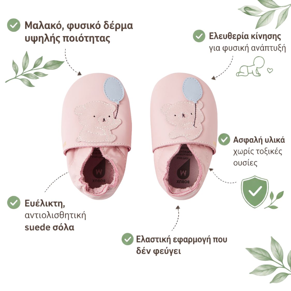 Bobux: Βρεφικά παπούτσια Soft sole (0-2 ΕΤΩΝ) Teddy - Ballet Pink