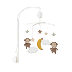 Το πιο όμορφο μόμπιλε για την κούνια του μωρού! Δημιουργεί μια ήρεμη ατμόσφαιρα αποκοιμίζοντας το μωρό. Οι φιγούρες γυρίζουν γύρω-γύρω αργά καθώς παίζει η μουσική. Παίζει μια γλυκιά χαλαρωτική μελωδία καθώς κινούνται τα πανέμορφα μαϊμουδάκια, συννεφάκια και αστεράκια που...