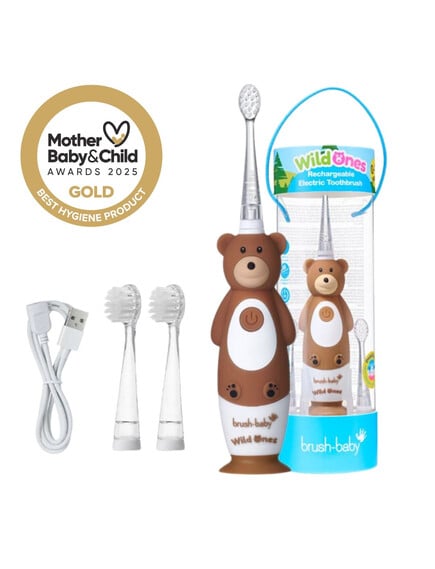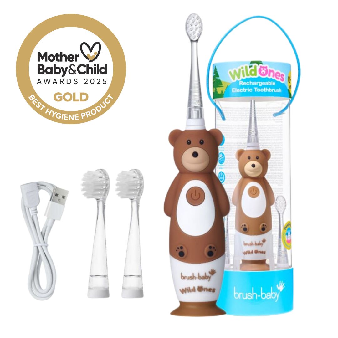 Η Brush Baby Wild Ones ξεχωρίζει γιατί είναι η μοναδική επαναφορτιζόμενη ηλεκτρική οδοντόβουρτσα που μπορεί να χρησιμοποιηθεί ακόμα και στο μπάνιο, προσφέροντας άνεση και λειτουργικότητα για κάθε οικογένεια.