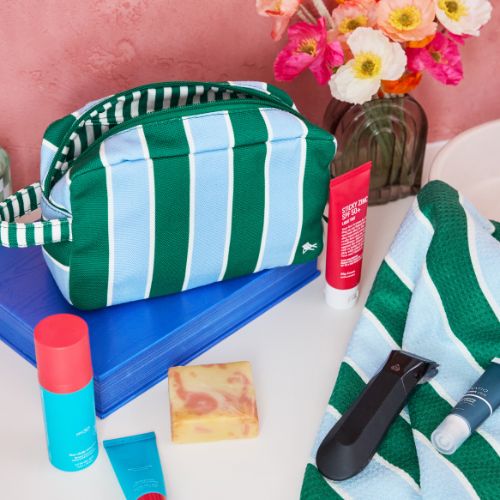 Με χώρο για την ενυδατική σου, το αντηλιακό, μακιγιάζ ή ό,τι άλλο χρειάζεσαι καθημερινά, όλα συγκεντρωμένα σε μία ανθεκτική και κομψή τσάντα. Με πρακτικό φερμουάρ και εύχρηστη λαβή για να την αρπάζεις και να φεύγεις… ακόμα κι όταν βιάζεσαι να προλάβεις την πτήση ✈️