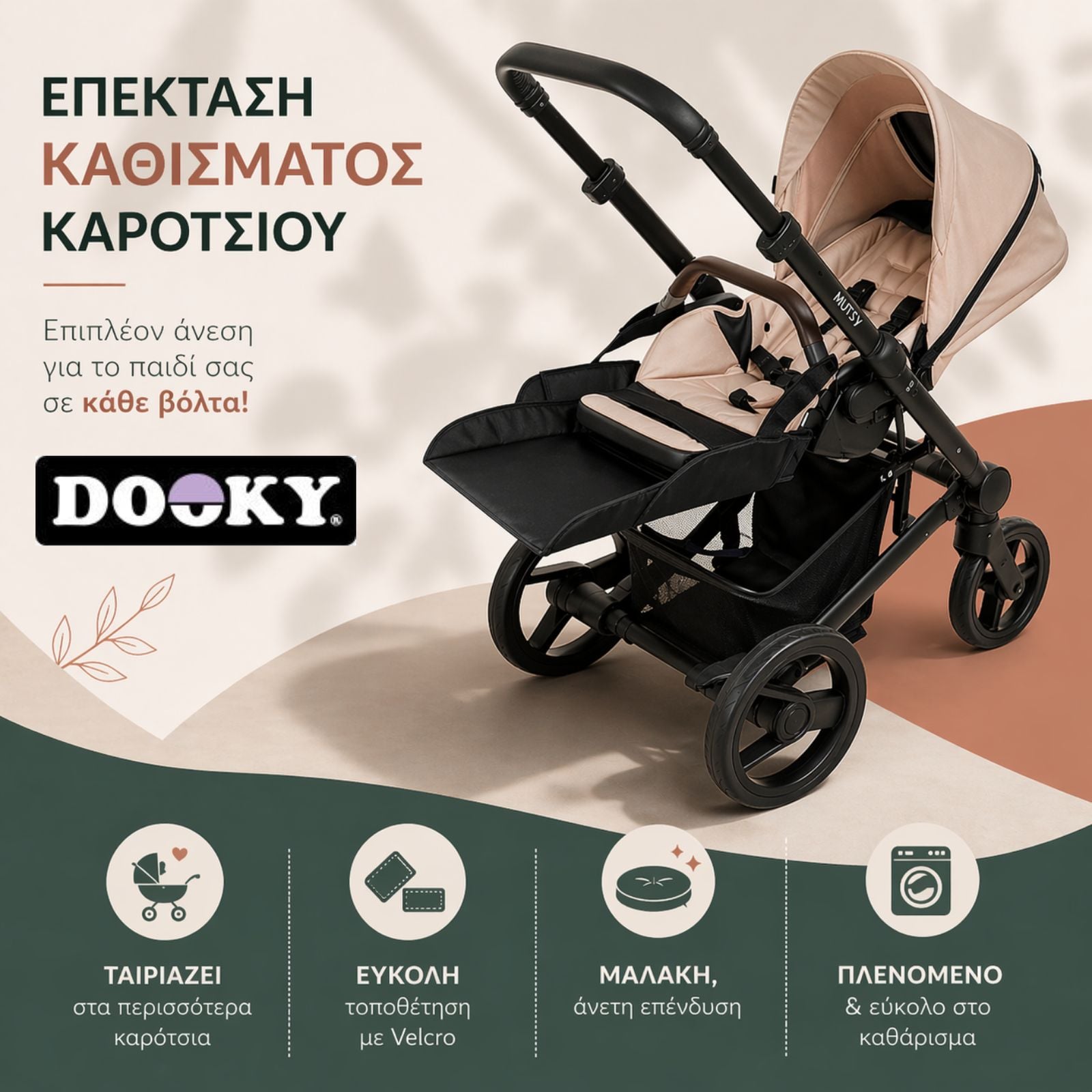 Η επέκταση καθίσματος καροτσιού από την Dooky είναι η πρακτική λύση που δίνει στο καρότσι σου τη “δεύτερη ζωή” που χρειάζεται. Προσθέτει επιπλέον χώρο και στήριξη στα ποδαράκια, ώστε το παιδί να κάθεται σωστά, χωρίς να κουράζεται.