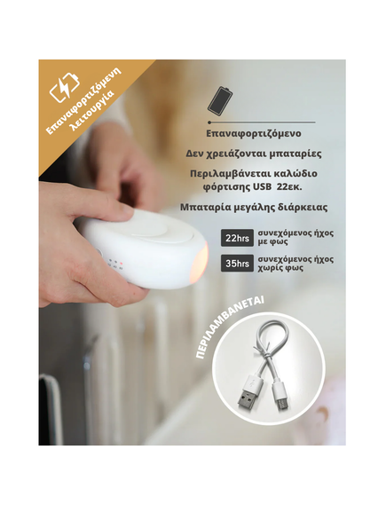 2. Διαθέτει Cry sensor: αισθητήρα που αναγνωρίζει το κλάμα του μωρού, ενεργοποιείται αυτόματα και ξαναρχίζει τη χαλαρωτική μελωδία και τους λευκούς ήχους, χωρίς να χρειάζεται να πατήσετε κάποιο κουμπάκι ή να κάνετε κάποια ενέργεια.