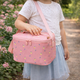 Διαθέτει μεγάλο χώρο ώστε να χωρέσετε γενναιόδωρα γεύματα και ροφήματα μέσα σε αυτό, μια τσεπούλα για τα μαχαιροπίρουνά σας και ένα ταμπελάκι για να γράψετε το όνομα του παιδιού για να μπορέσει να ξαναβρεί τον ...κηδεμόνα του σε περίπτωση απώλειας.