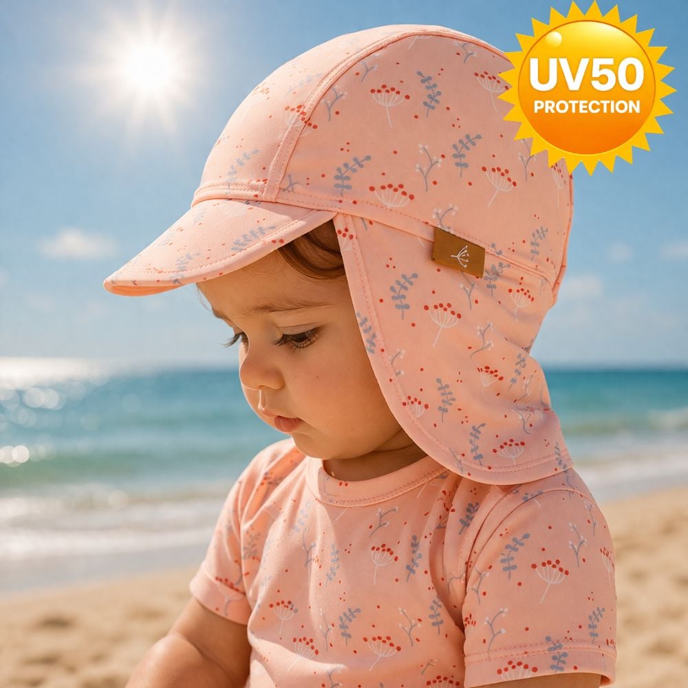 Το καπέλο της Fresk είναι τύπου λεγεωνάριου, με προστασία UV50 και προστατεύει το κεφαλάκι, τα αυτάκια και το σβέρκο του παιδιού!