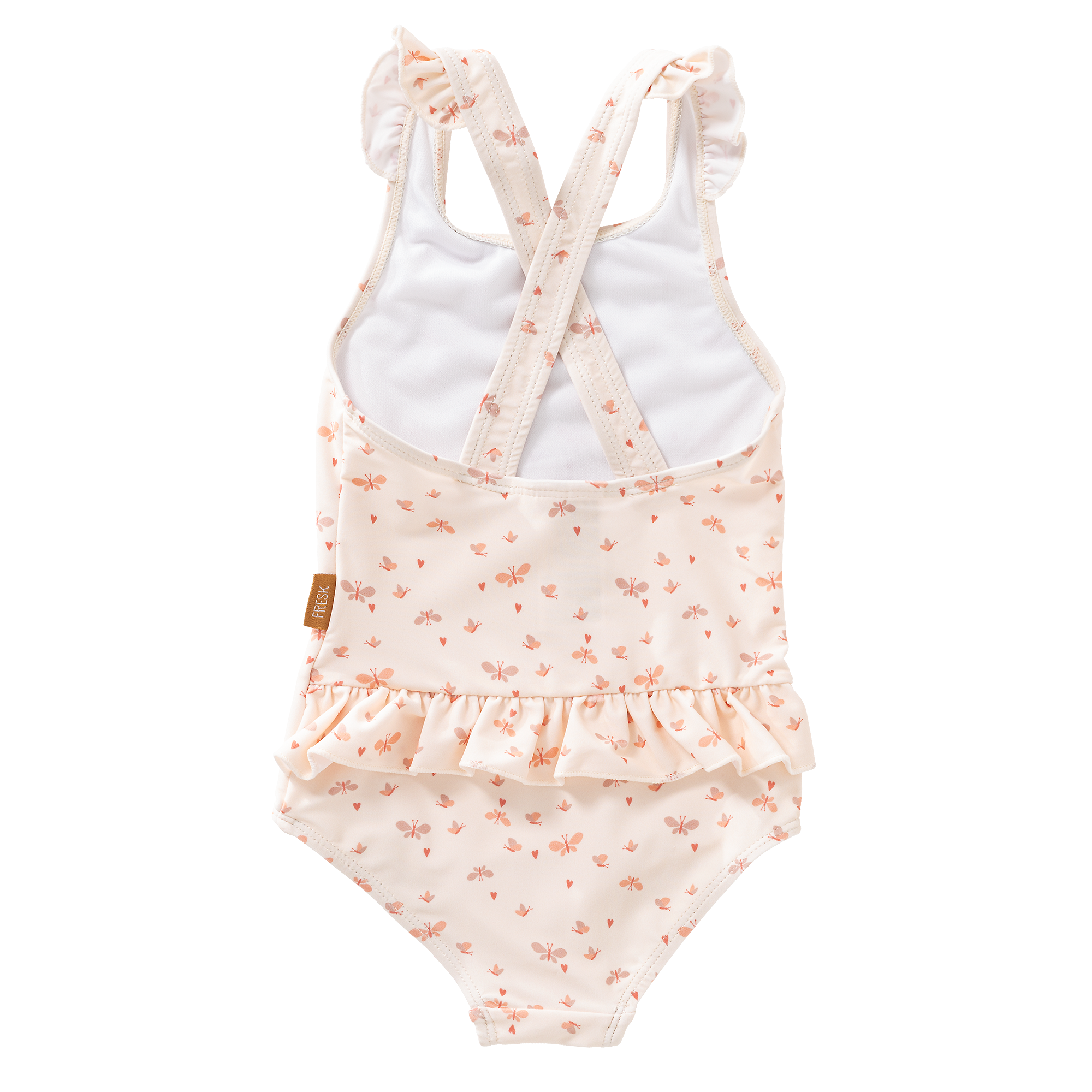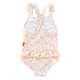 Τα βολάν στις τιράντες και τους γοφούς, καθώς και το υπέροχο σχέδιο, κάνουν το μαγιό να τραβάει τα βλέμματα! Σε συνδυασμό με την εμφάνιση, το μαγιό προσφέρει UV50 και προστατεύει το παιδί από τον ήλιο.