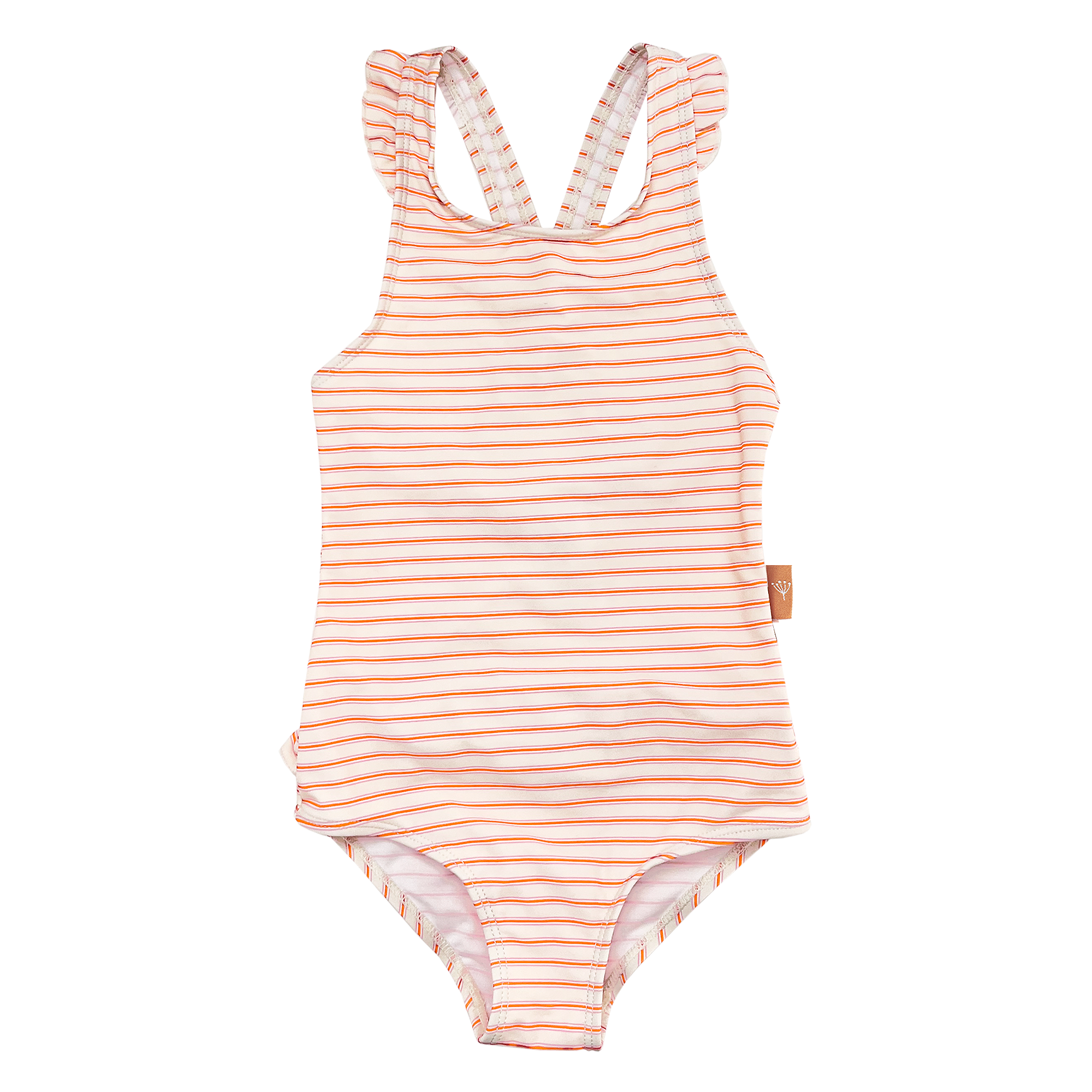 Τα βολάν στις τιράντες και τους γοφούς, καθώς και το υπέροχο σχέδιο, κάνουν το μαγιό να τραβάει τα βλέμματα! Σε συνδυασμό με την εμφάνιση, το μαγιό προσφέρει UV50 και προστατεύει το παιδί από τον ήλιο.