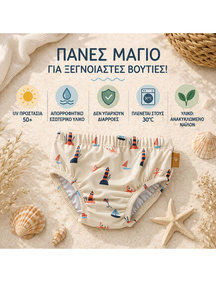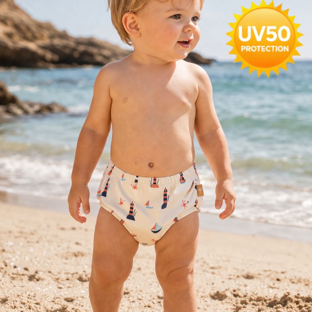 Με την προστασία UV50+, το μικρό σας παραμένει ασφαλές από τις ακτίνες του ήλιου, ενώ το μαλακό και απορροφητικό υλικό στο εσωτερικό κρατά το δερματάκι του στεγνό και άνετο, αποφεύγοντας τις "διαρροές"! Είναι πολύ πρακτικό, αφού μπορείτε να το πλύνετε και να το χρησιμοποιήσετε ξανά χωρίς την ανάγκη για επιπλέον πάνα, κάνοντάς το ιδανικό για καθημερινή χρήση στην παραλία ή την πισίνα.