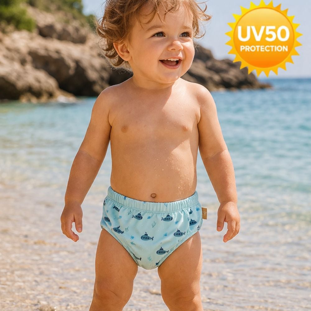 Με την προστασία UV50+, το μικρό σας παραμένει ασφαλές από τις ακτίνες του ήλιου, ενώ το μαλακό και απορροφητικό υλικό στο εσωτερικό κρατά το δερματάκι του στεγνό και άνετο, αποφεύγοντας τις "διαρροές"! Είναι πολύ πρακτικό, αφού μπορείτε να το πλύνετε και να το χρησιμοποιήσετε ξανά χωρίς την ανάγκη για επιπλέον πάνα, κάνοντάς το ιδανικό για καθημερινή χρήση στην παραλία ή την πισίνα.