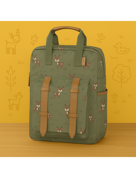 - Έχει ειδικό τμήμα εσωτερικά έτσι ώστε να τοποθετεί το ποτηράκι του, ή το παγούρι του και να μένει στη θέση του.