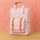 - Έχει ειδικό τμήμα εσωτερικά έτσι ώστε να τοποθετεί το ποτηράκι του, ή το παγούρι του και να μένει στη θέση του.