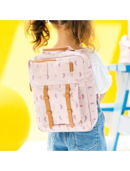 - Έχει ειδικό τμήμα εσωτερικά έτσι ώστε να τοποθετεί το ποτηράκι του, ή το παγούρι του και να μένει στη θέση του.