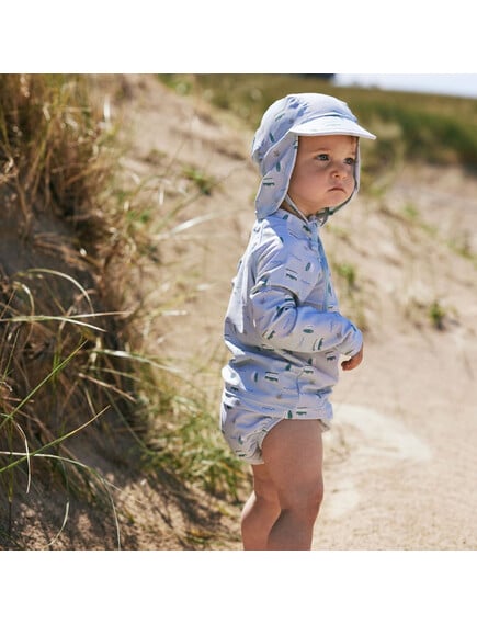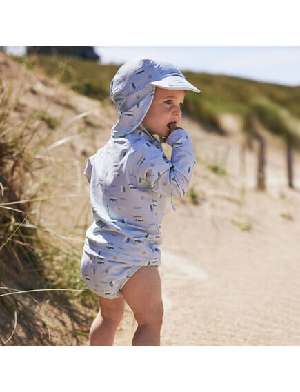 Το καπέλο της Fresk είναι τύπου λεγεωνάριου, με προστασία UV50 και προστατεύει το κεφαλάκι, τα αυτάκια και το σβέρκο του παιδιού!