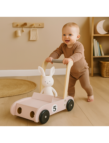 Η περπατούρα της Jabadabado είναι σχεδιασμένη σαν μικρό αμάξι με τον διάσημο χαρακτήρα Bunny καθισμένο και έτοιμο να ακολουθήσει το μωρό σε κάθε του νέα περιπέτεια, Παρέχει σταθερή και ασφαλή στήριξη ακόμα και στα μικρότερα παιδάκια που μόλις άρχισαν να περπατάνε καθώς έχει ρυθμιζόμενα φρένα στους πίσω τροχούς.
