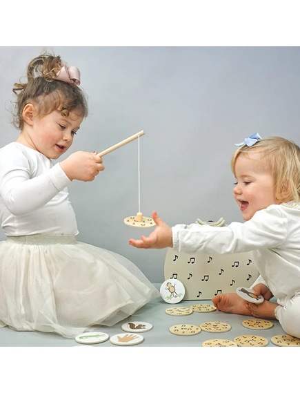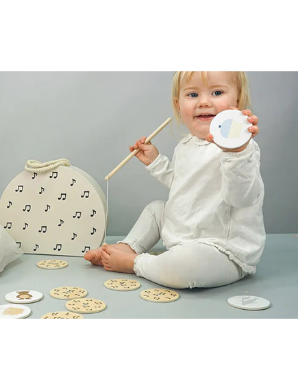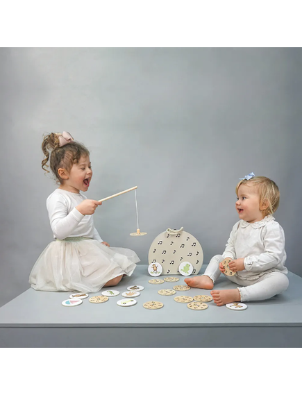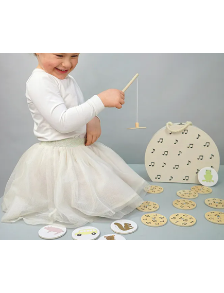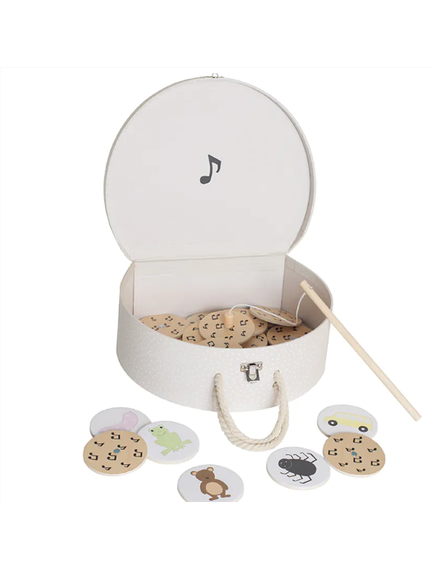 Το βαλιτσάκι περιέχει 23 κάρτες τραγουδιών με διαφορετικά σουηδικά μοτίβα παιδικής ομοιοκαταληξίας, όπου οι συμμετέχοντες πρέπει να τραγουδήσουν ένα τραγούδι με βάση το μοτίβο. Χρησιμοποιήστε το μικρό καλάμι που περιλαμβάνεται, ψαρέψτε μια κάρτα τραγουδιού και τραγουδήστε το τραγούδι που ταιριάζει με την εικόνα. Ο συνδυασμός λέξεων και τραγουδιών είναι ένας διασκεδαστικός τρόπος για να μάθει το παιδί σας να βάζει λέξεις σε εικόνες.