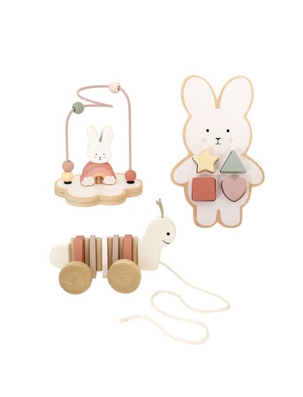 Μικρά, γλυκά και ξύλινα! Το Gift Kit Bunny περιλαμβάνει τρία υπέροχα παιχνίδια, ανάμεσά τους ένα χαριτωμένο μικρό άβακα με στοίβαγμα στο κέντρο. Παρουσιάζεται σε όμορφη δώρου συσκευασία και είναι το τέλειο δώρο για τους μικρούς μας φίλους.
