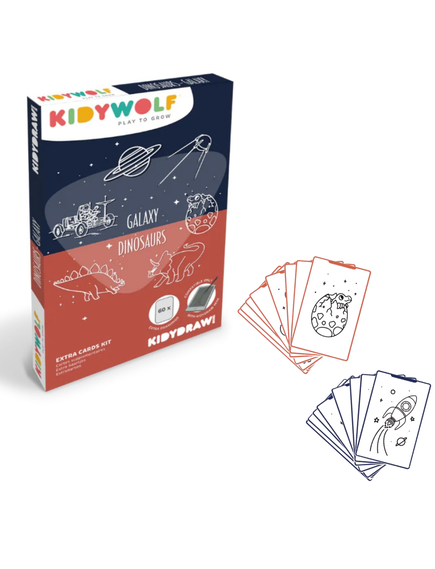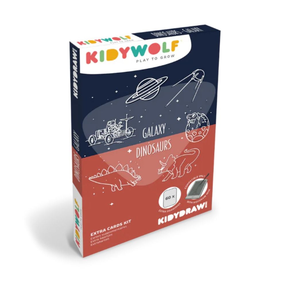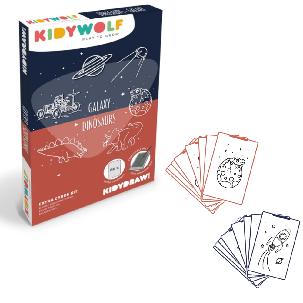 Ενισχύστε τη μάθηση του παιδιού σας παίζοντας! Το σετ KIDYDRAW-MINI – Dinosaurs & Galaxy περιέχει θεματικές κάρτες έτοιμες για σχεδίαση, για ατελείωτες ώρες δημιουργικής διασκέδασης. Ιδανικές για να ενισχύσουν τη φαντασία! Συμβατό με τα KIDYDRAW-MINI tablet.