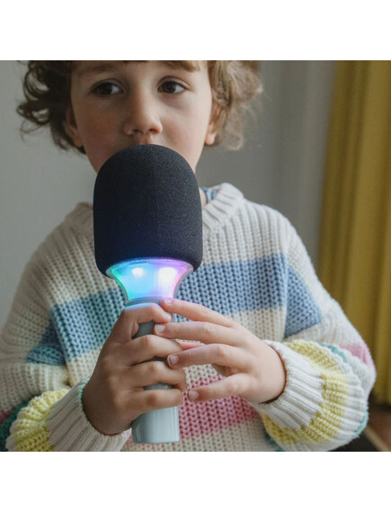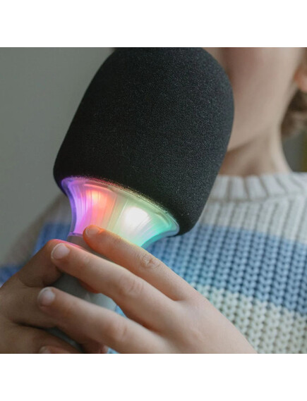 Το μικρόφωνο φωτίζεται με πολύχρωμα LED που αναβοσβήνουν στο ρυθμό της μουσικής.