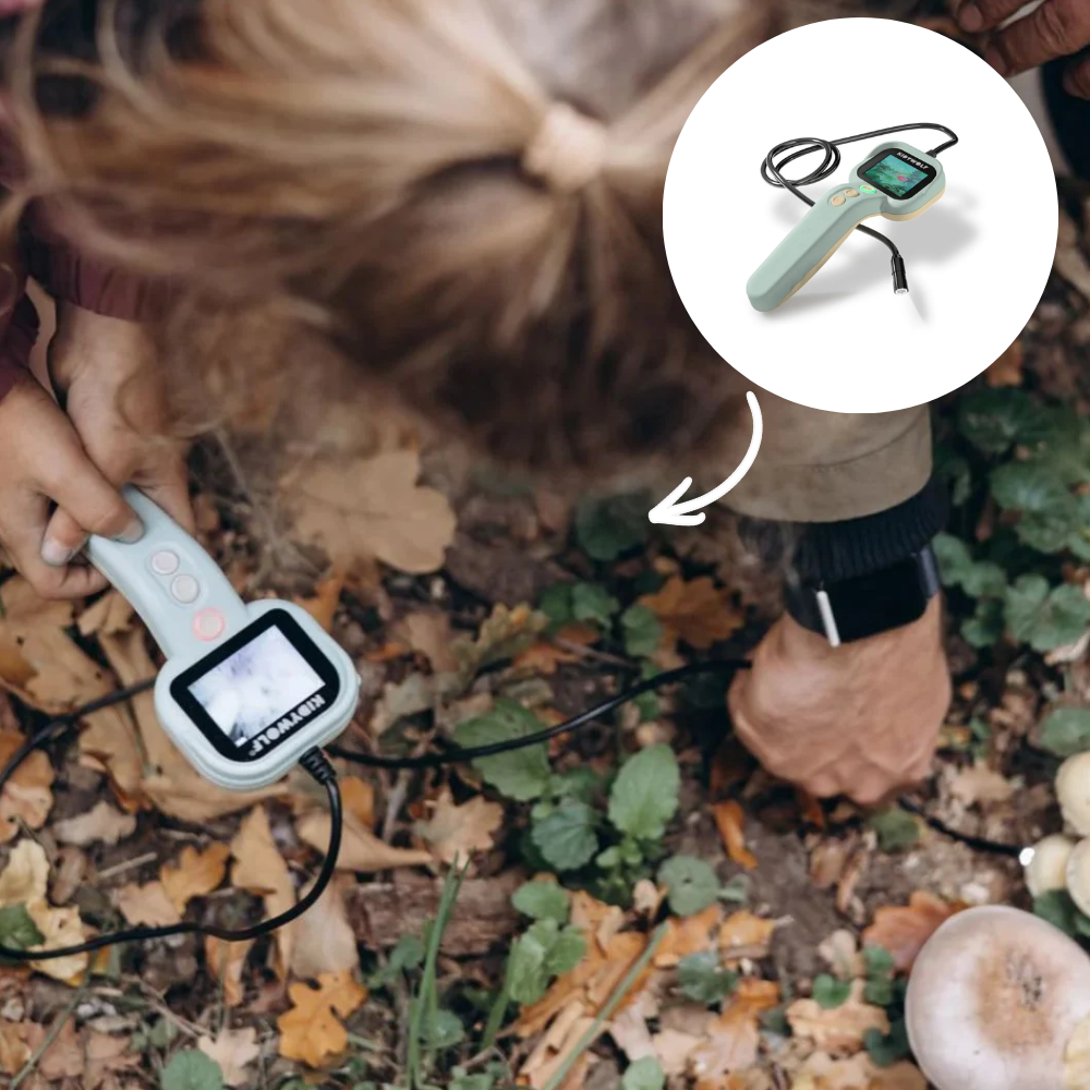 Από φωλιές και φύλλα μέχρι κάτω από έπιπλα και στενά σημεία, κάθε γωνιά γίνεται ένα νέο πεδίο παρατήρησης. Με το εύκαμπτο καλώδιο και την ενσωματωμένη οθόνη, τα παιδιά βλέπουν τα πάντα από διαφορετική οπτική.