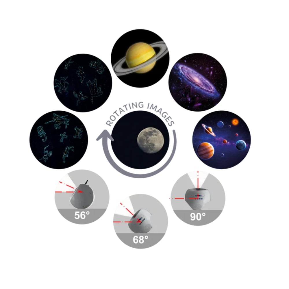 Με 6 δίσκους προβολής, ήρεμη μουσική και εκπαιδευτικό περιεχόμενο, κάθε βράδυ γίνεται ένα μικρό ταξίδι φαντασίας στον μακρινό γαλαξία!