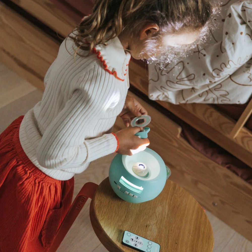 Κάντε την ώρα του ύπνου μια ξεχωριστή στιγμή: τοποθετήστε το KIDYSTAR στο κομοδίνο, χαμηλώστε τα φώτα, βάλτε έναν δίσκο… και αφήστε το παιδί να διαλέξει τον κόσμο των ονείρων του για απόψε!