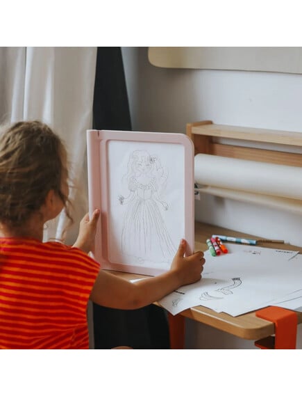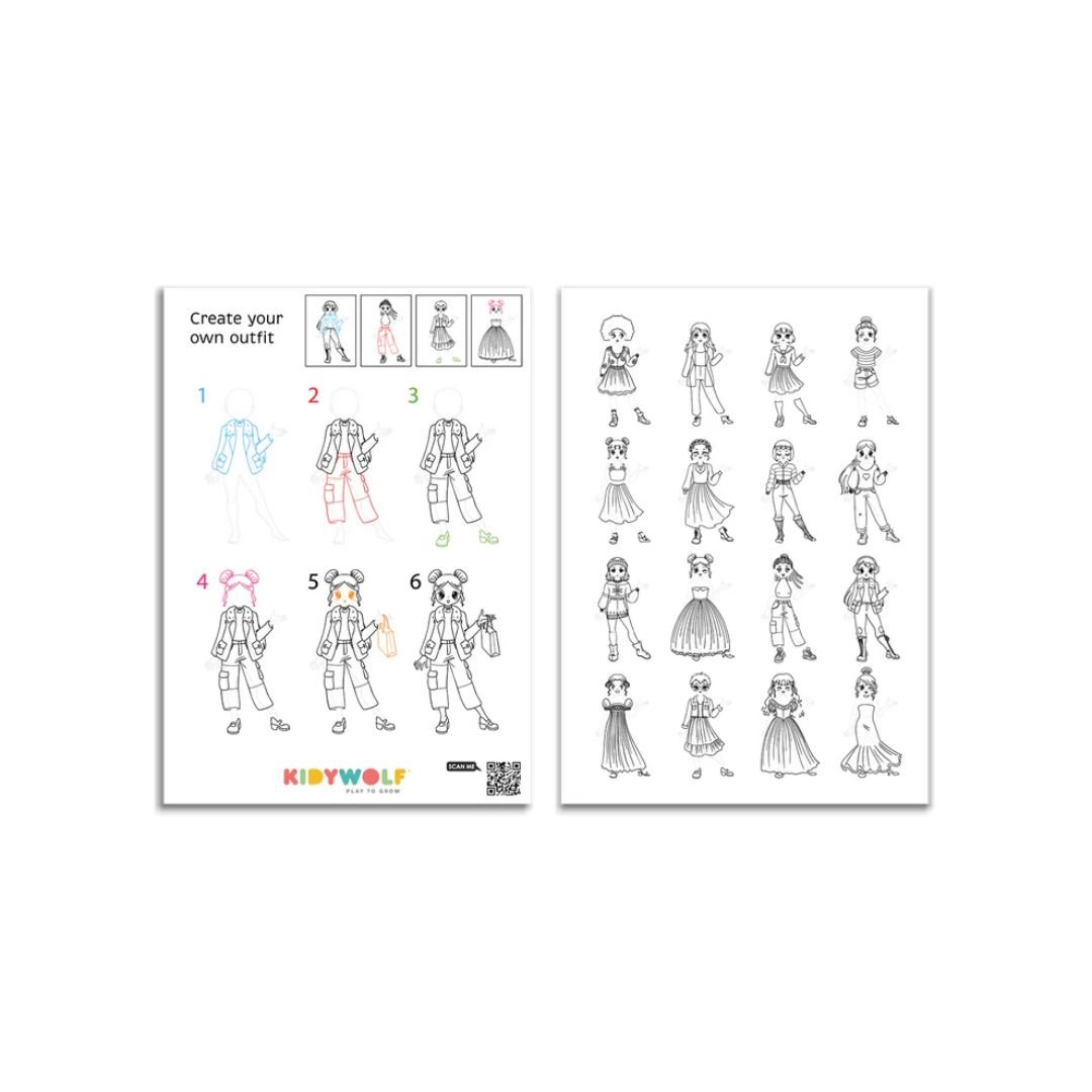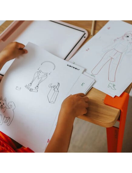 Με το KIDYDRAW PRO FASHION, κάθε παιδί μπορεί να γίνει ανερχόμενος σχεδιαστής μόδας. Χάρη σε ένα έξυπνο σύστημα αυτοκόλλητων και templates, μπορεί να συνδυάζει σιλουέτες, ρούχα, αξεσουάρ και μοτίβα με πάνω από 1.000 δυνατούς συνδυασμούς, όπως σε ένα πραγματικό στούντιο μόδας. Η διπλής όψης φωτεινή επιφάνεια προσφέρει χώρο για δημιουργική έκφραση, ενισχύοντας τη φαντασία και την αίσθηση του στυλ, μακριά από οθόνες.