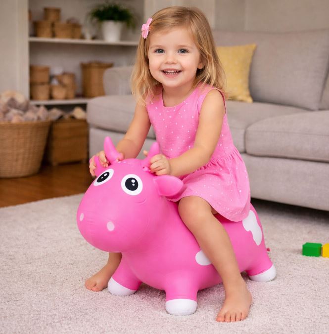 Kidzzfarm: Φουσκωτό παιχνίδι Ισορροπίας χοπ χοπ- Bella η αγελαδίτσα - Pink / Ροζ