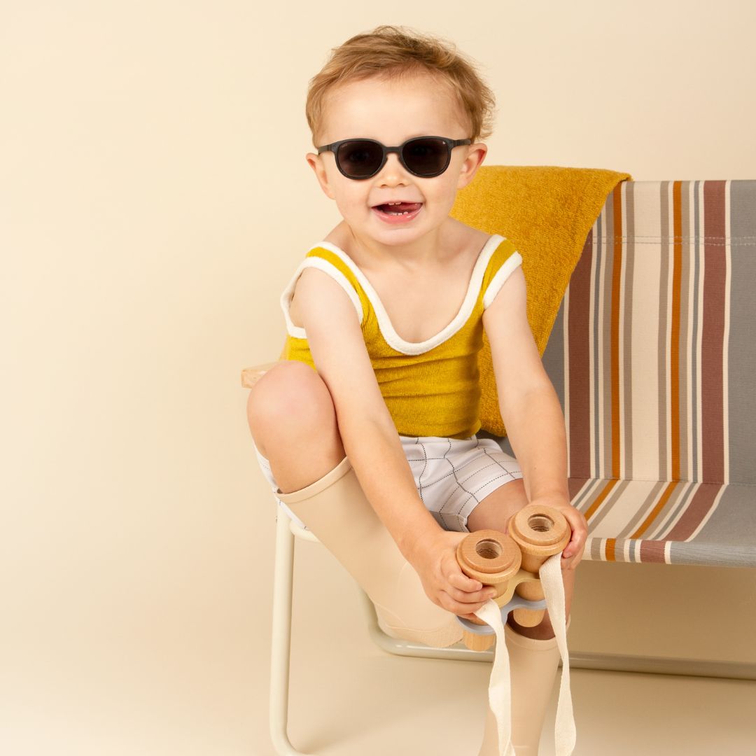 Τα WaZZ sunglasses με το ορθογώνιο σχήμα και τον μοντέρνο σκελετό είναι ειδικά σχεδιασμένα για μωρά 0–1 έτους, προσφέροντας απόλυτη ασφάλεια και άνεση από τους πρώτους κιόλας μήνες. Ιδανικά για μικρούς εξερευνητές που απολαμβάνουν τις βόλτες τους στον ήλιο, με στυλ… σαν της μαμάς και του μπαμπά!