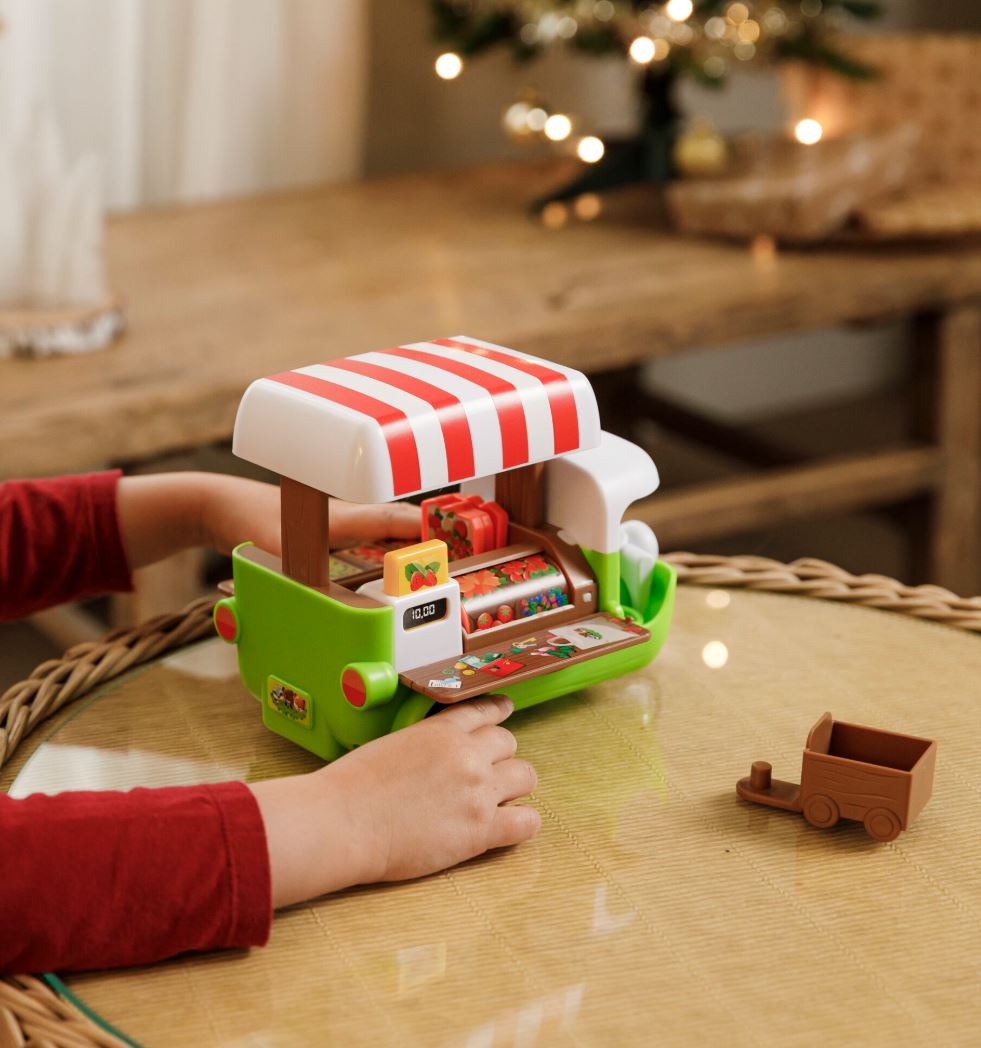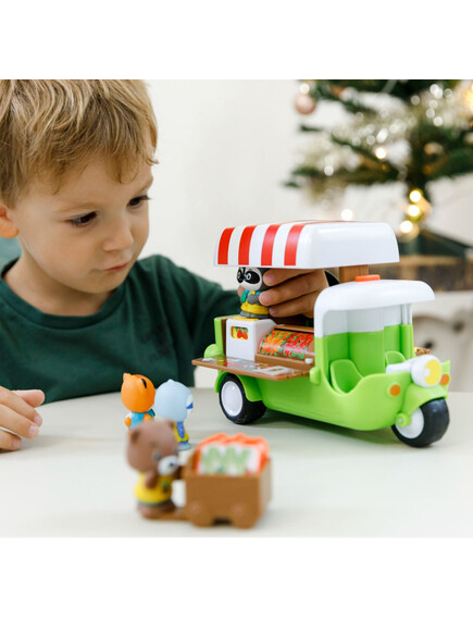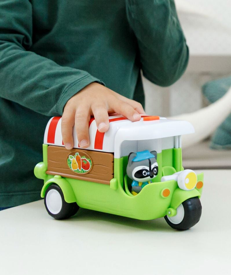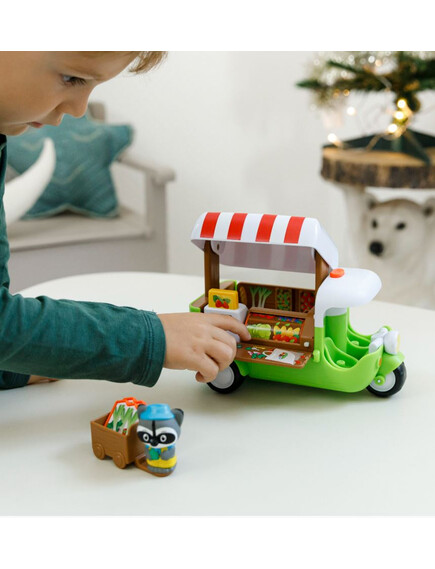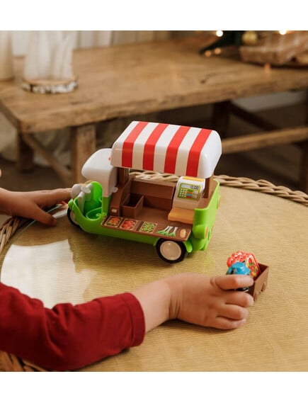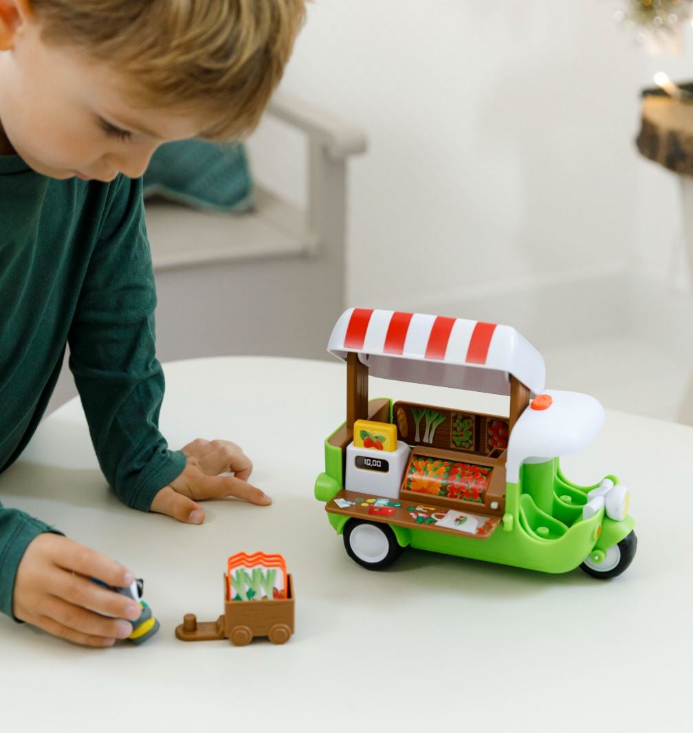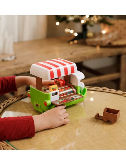 ένα μικρό θαύμα με ρόδες που, με το πάτημα ενός κουμπιού, μεταμορφώνεται σε ένα ολόκληρο μανάβικο γεμάτο φρούτα, λαχανικά και ατελείωτη διασκέδαση!