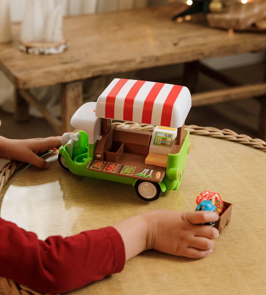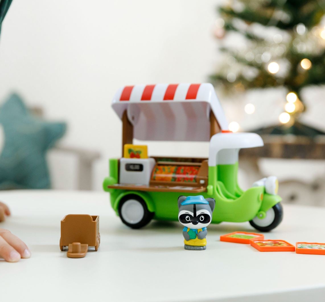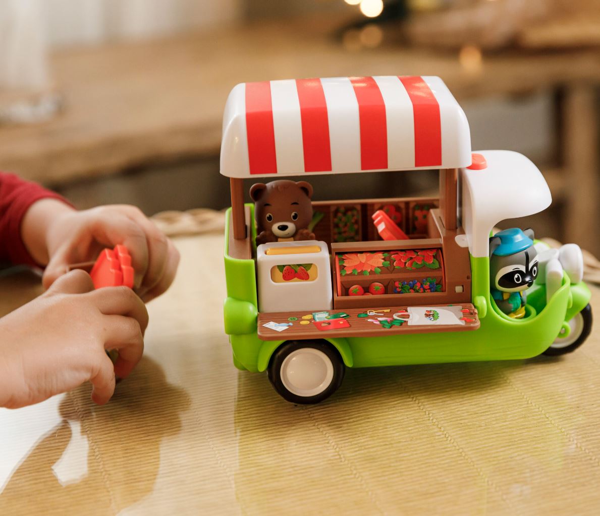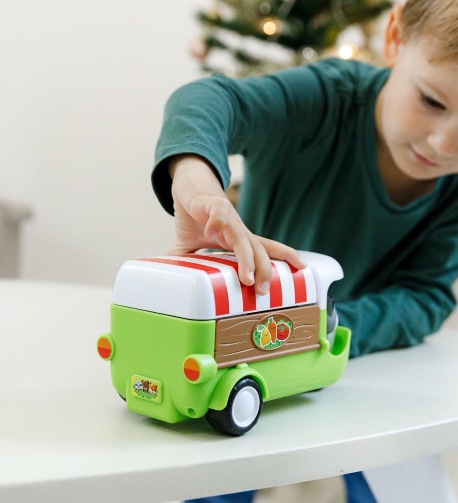 ένα μικρό θαύμα με ρόδες που, με το πάτημα ενός κουμπιού, μεταμορφώνεται σε ένα ολόκληρο μανάβικο γεμάτο φρούτα, λαχανικά και ατελείωτη διασκέδαση!