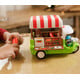 Με μια μαγική κίνηση, το φορτηγάκι ανοίγει και αποκαλύπτει ένα πολύχρωμο κατάστημα όπου όλα συμβαίνουν: